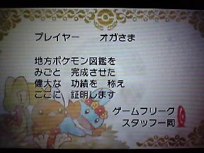 このおめでとう画面、何度撮ってもいい感じにポケモンが映らなくて